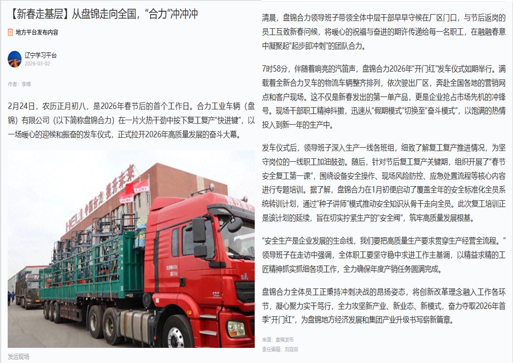 合力工業(yè)車輛(盤錦)有限公司……